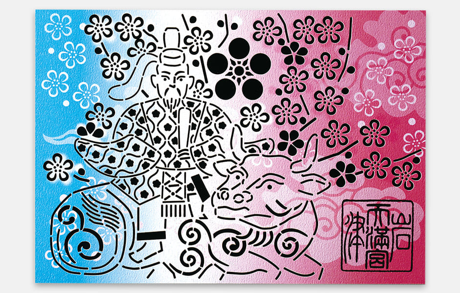 二月から始まる「梅まつり」をイメージし、境内や梅苑に咲き誇る梅の華やかさを表現。